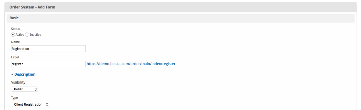 | Label | Enter the label for the order form this will be the URI the user visits to register. |