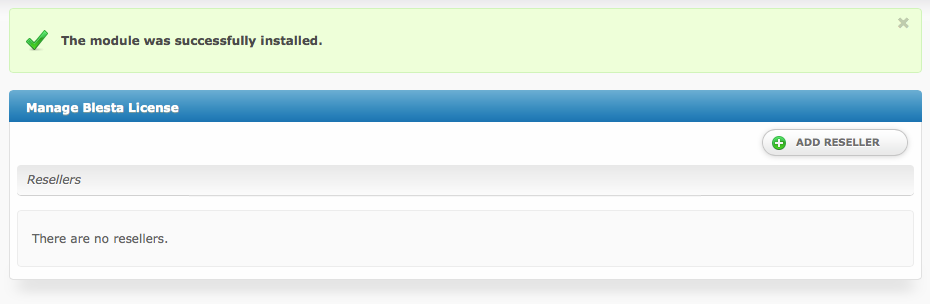 A message will be displayed, indicating that the module was successfully installed. Then click the "Add Reseller" button.
