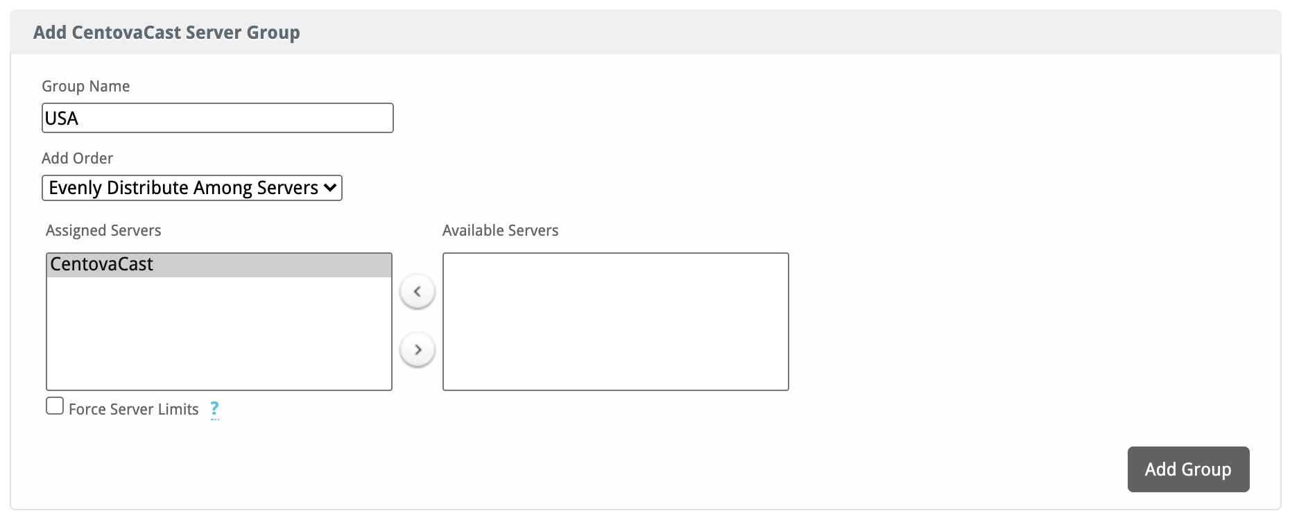 Server groups are useful for categorising CentovaCast servers. When creating a Package, a specific server, or a server group may be selected for provisioning.