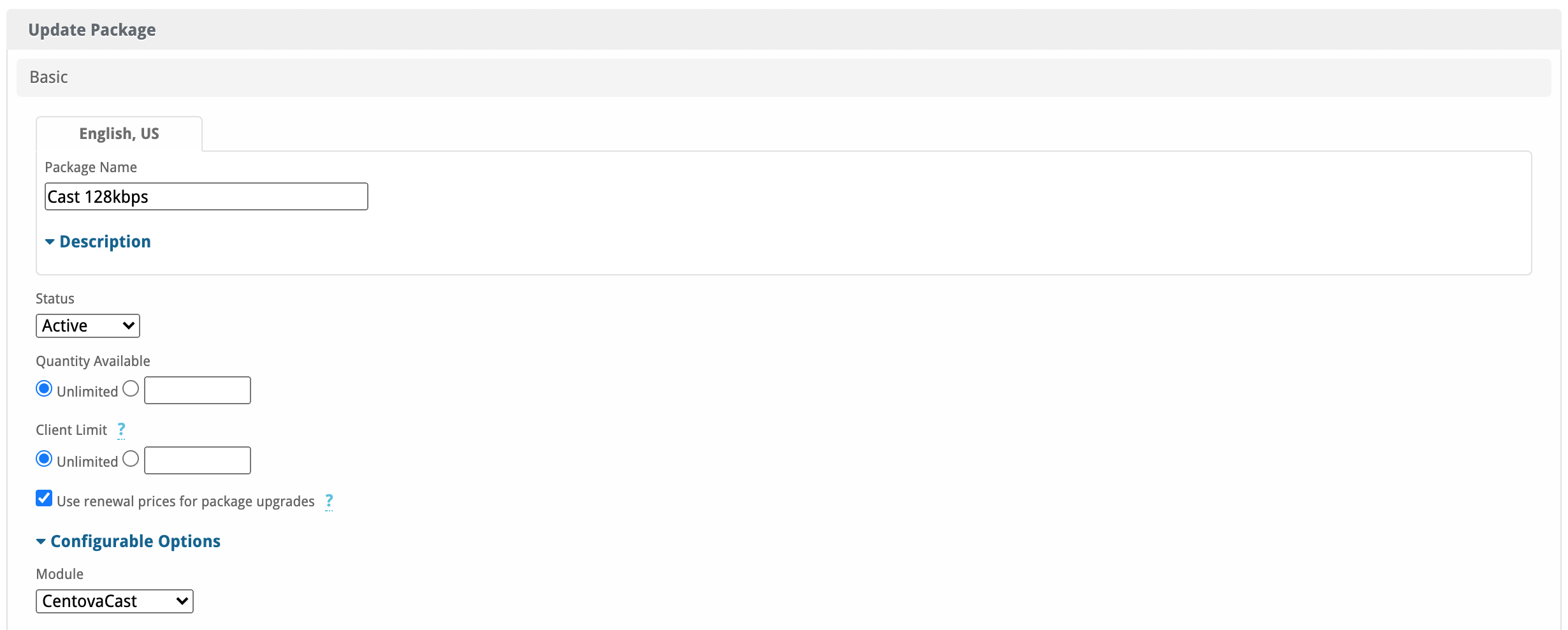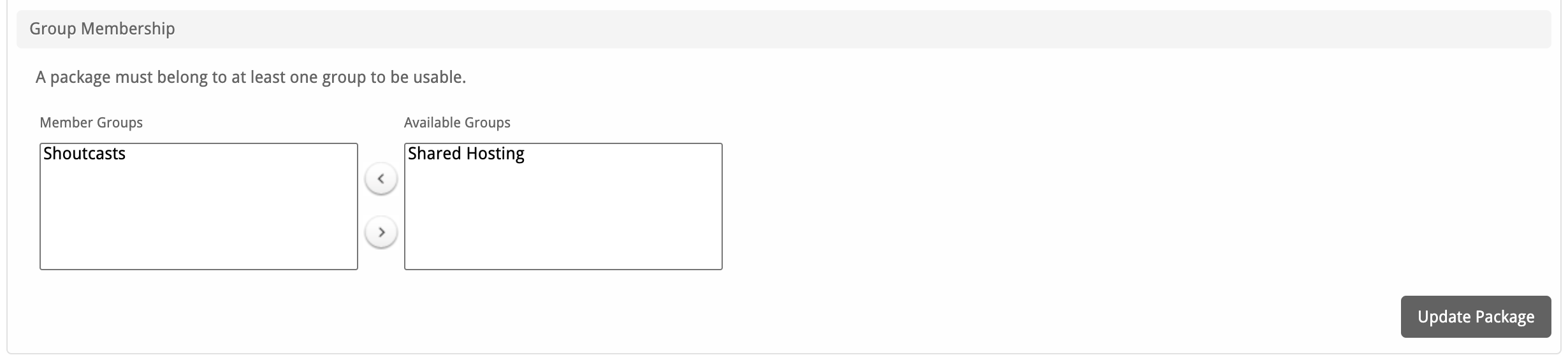 The only thing left to do is to add this Package Group to an order form so clients may place orders for your CentovaCast servers. See Creating an Order Form for more details.