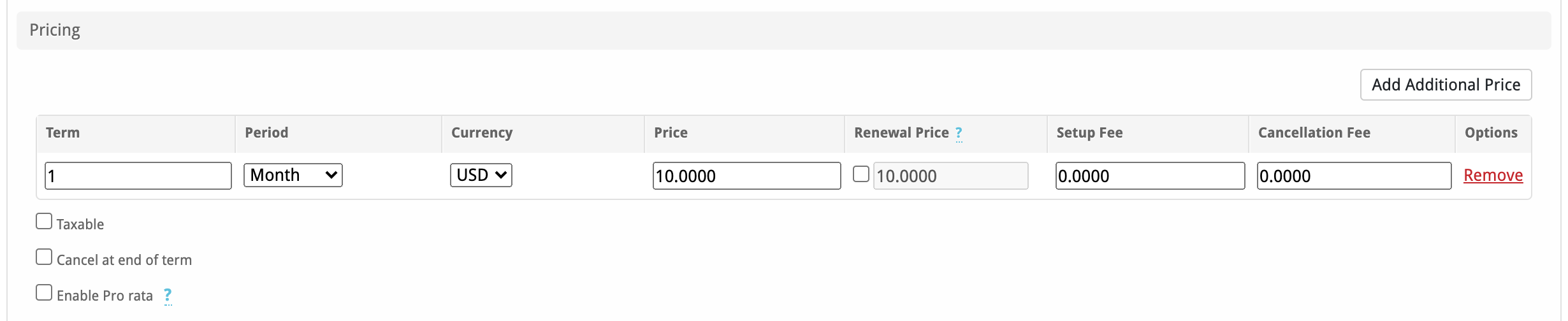 Click the "Add Additional Price" to add more pricing options. It's common for people to create 1 Month, 3 Month, 6 Month, and 1 Year price options. There are many possible combinations.