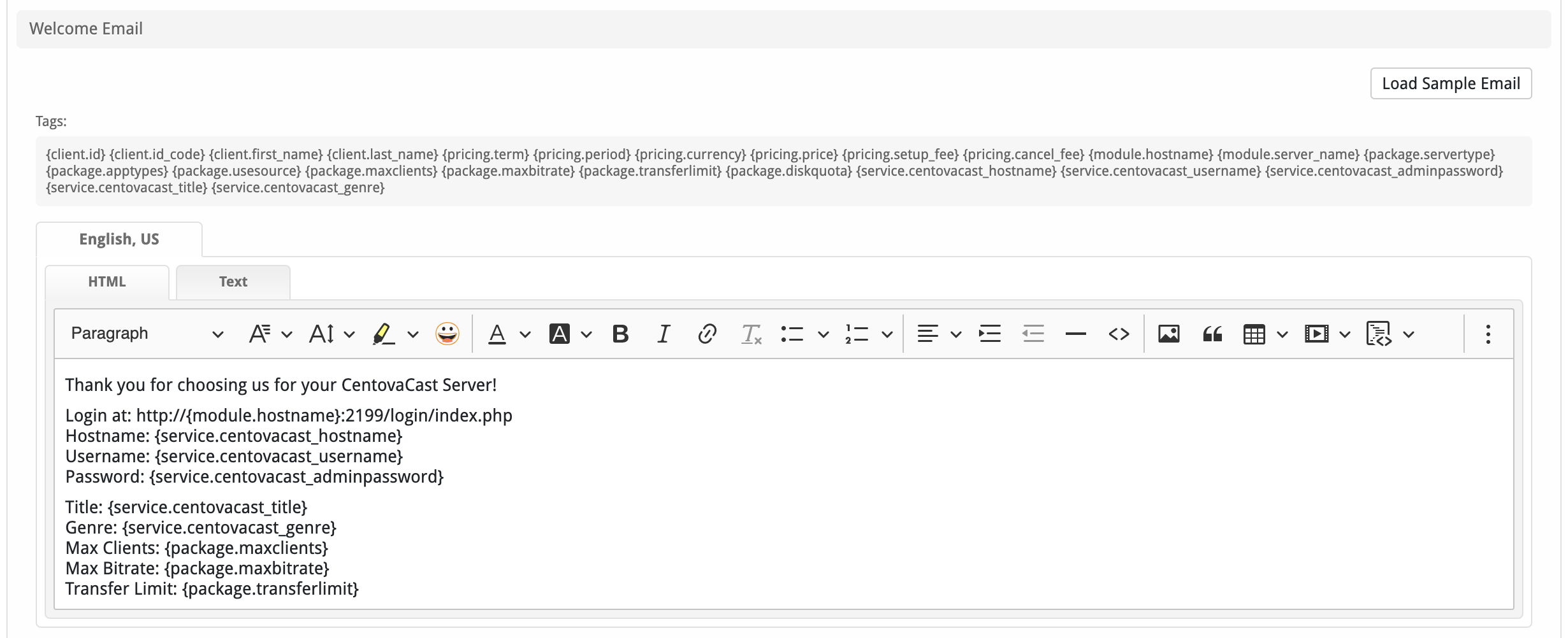 This sample email could be used in the Package Welcome Email section to help you get started. Be sure to enter content for your welcome email in both the HTML and Text sections. You can click on "Load Sample Email" to automatically enter the content below: