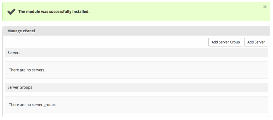 A message will be displayed, indicating that the module was successfully installed. Then click the "Add Server" button.