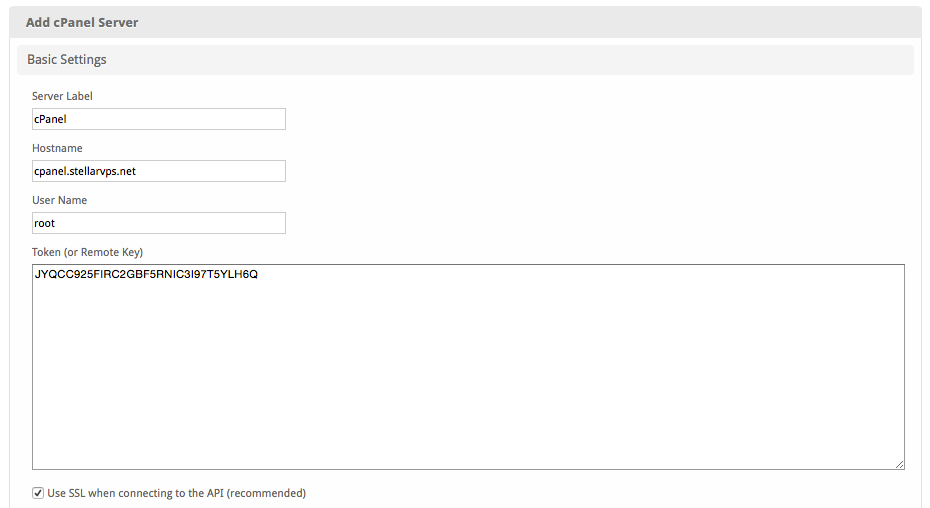 | Use SSL when connecting to the API | Check this option to use SSL for all API requests to your WHM server. This is highly recommended. |