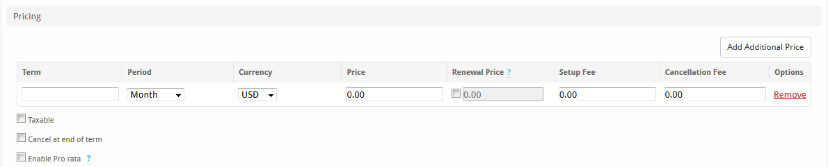 | Term | Enter the term for the desired pricing option. For example, if you wish to create a 3 month pricing option, enter 3 here. |