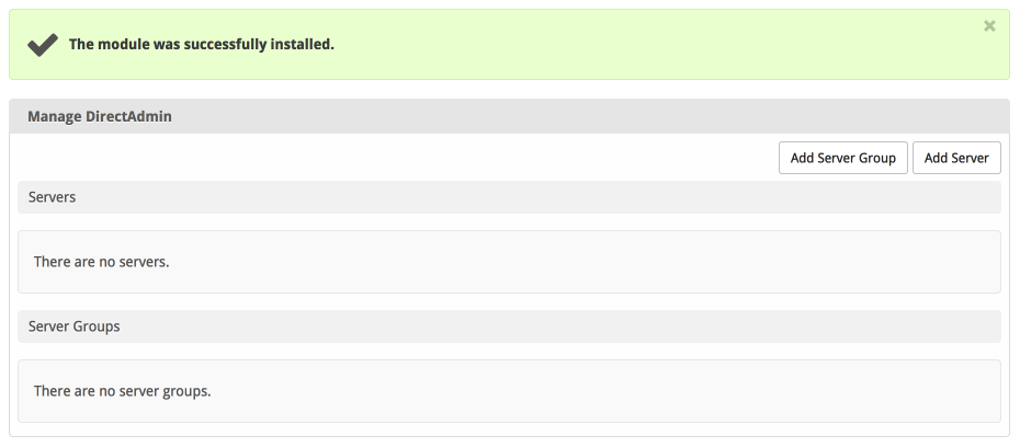 A message will be displayed, indicating that the module was successfully installed. Then click the "Add Server" button.