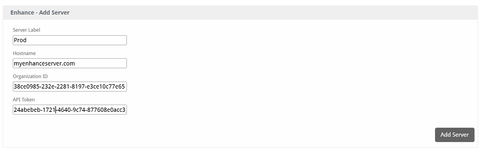 After filling out these options, click "Add Server" to add your Enhance server.