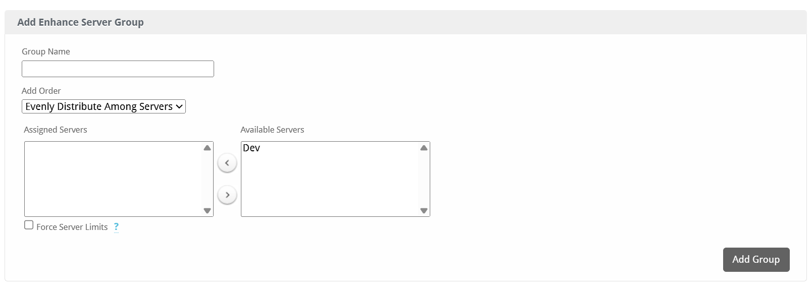 | Add Order | Choose how servers in this group will be selected for provisioning. Currently, first non-full server is the only add order. |