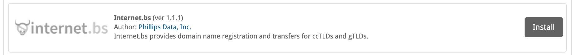 - Click the "Install" button within the Internet.bs module listing.