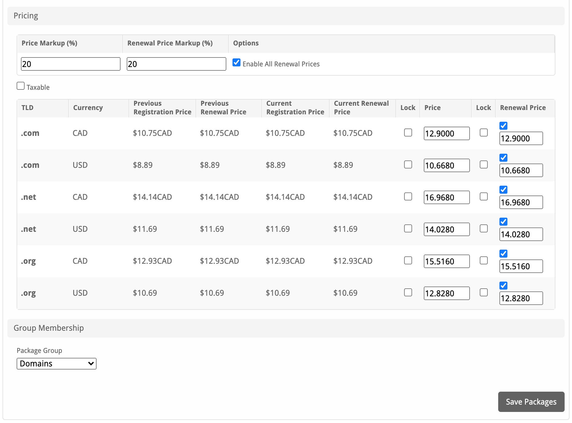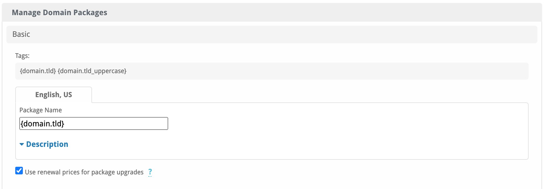 | Use renewal prices for package upgrades | When enabled, upgrading to this package will use renewal prices if they are set. The regular price will be used if this setting is disabled. |