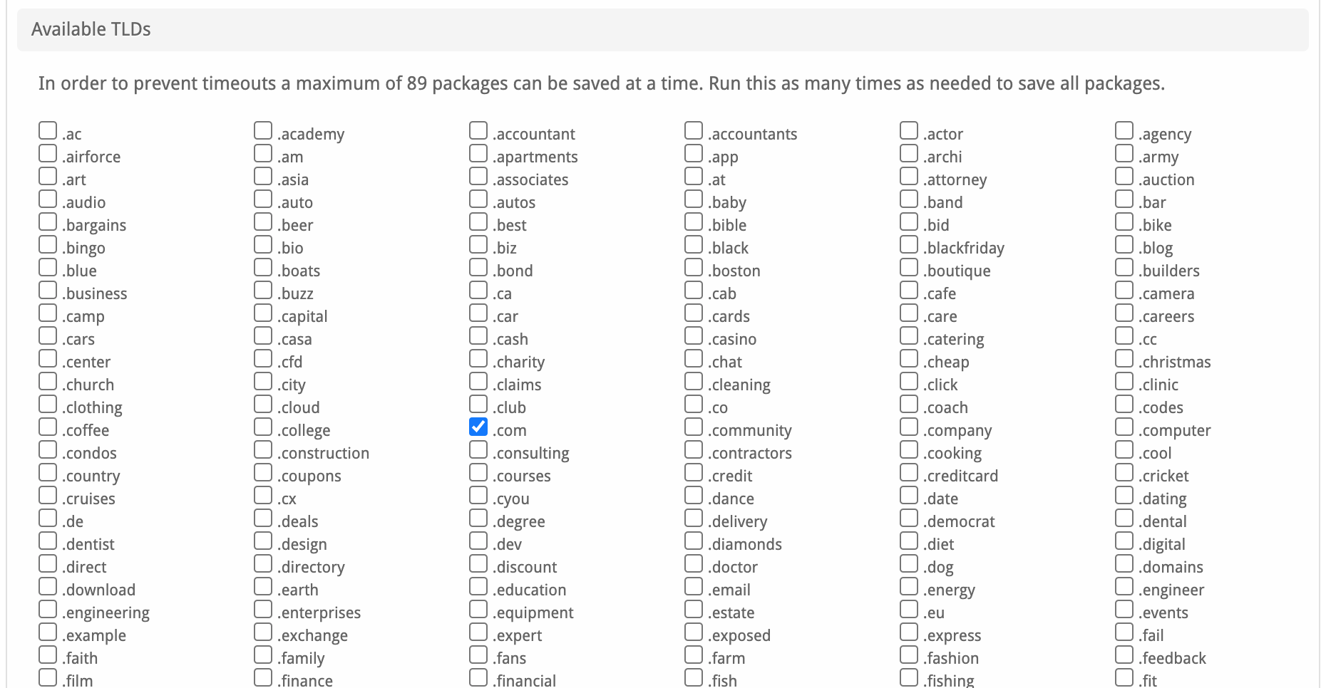 | Available TLDs | Select all the domains you wish to sell, if it's more than 89, pick the 89 first then select the rest as-well. |
