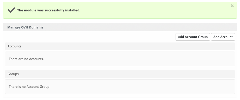 - Click the "Install" button within the OVH Domains module listing.
