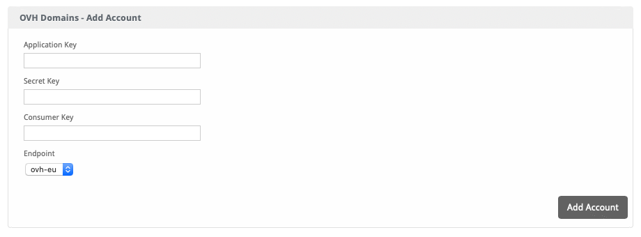 | Consumer Key | The Consumer Key provided by OVH. |