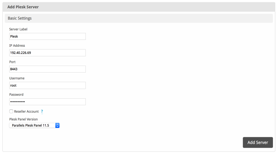 | Server Label | Enter a label for this Plesk server, it can be anything you like. | |