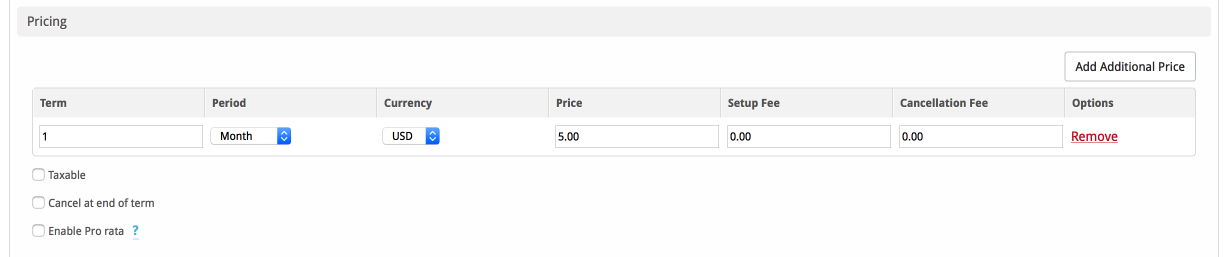 Click the "Add Additional Price" to add more pricing options. It's common for people to create 1 Month, 3 Month, 6 Month, and 1 Year price options. There are many possible combinations.