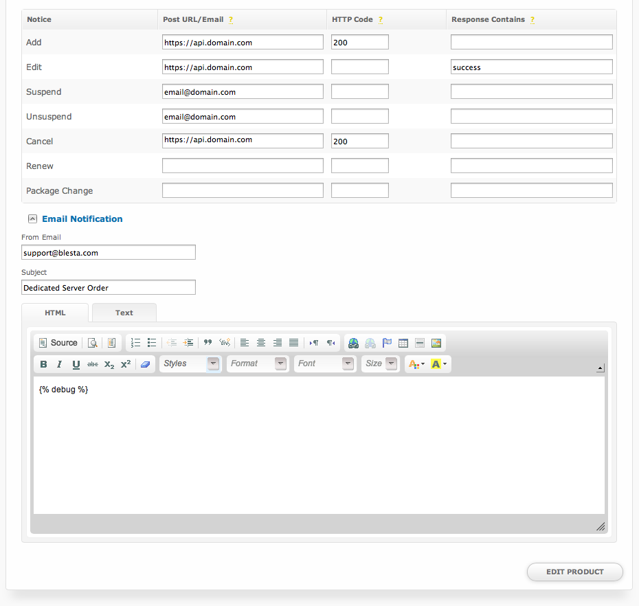 | HTML/Text | The HTML and Text body content for the email notification. |