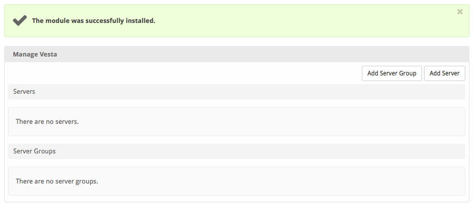 A message will be displayed, indicating that the module was successfully installed. Then click the "Add Server" button.