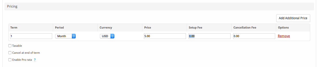 Click the "Add Additional Price" to add more pricing options. It's common for people to create 1 Month, 3 Month, 6 Month, and 1 Year price options. There are many possible combinations.