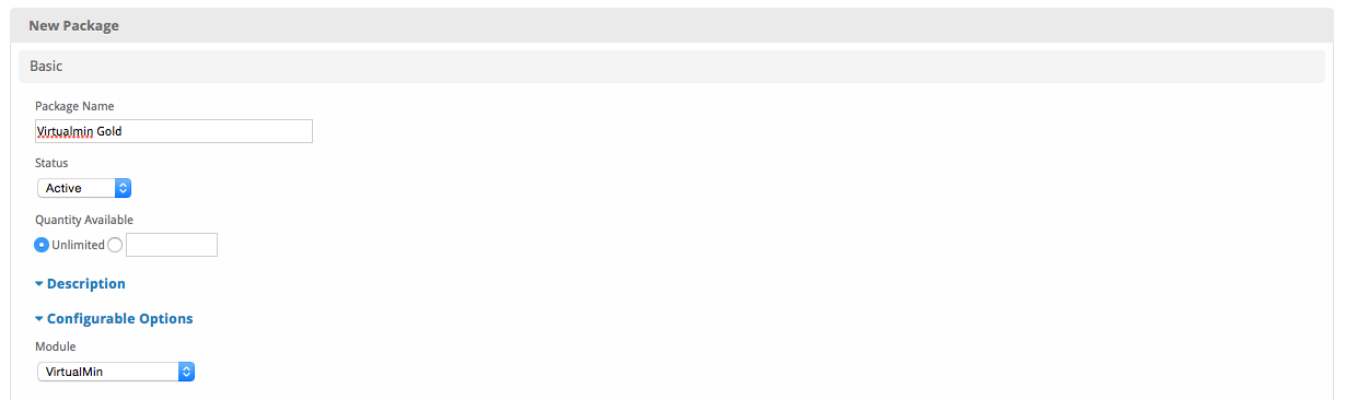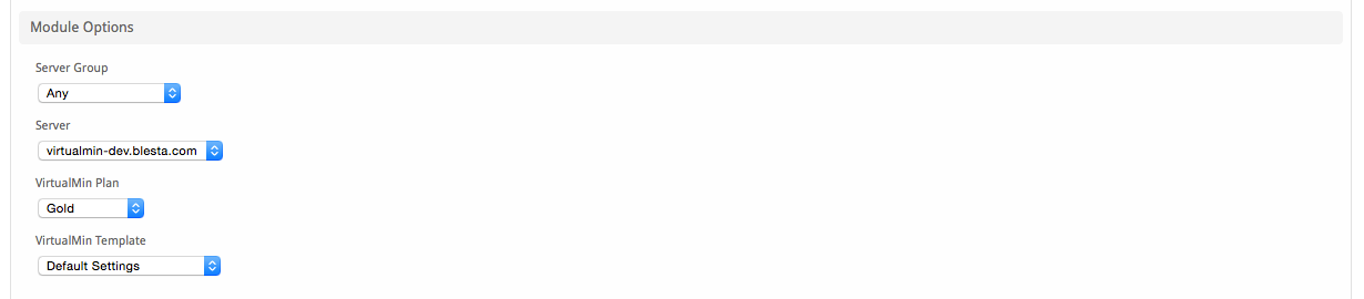 The only thing left to do is to add this Package Group to an order form so clients may place orders for your Virtualmin servers. See Creating an Order Form for more details.