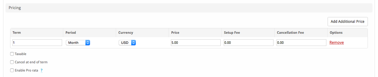 Click the "Add Additional Price" to add more pricing options. It's common for people to create 1 Month, 3 Month, 6 Month, and 1 Year price options. There are many possible combinations.