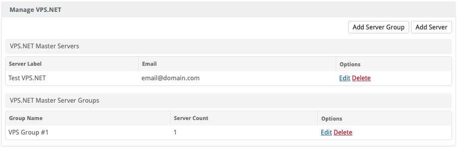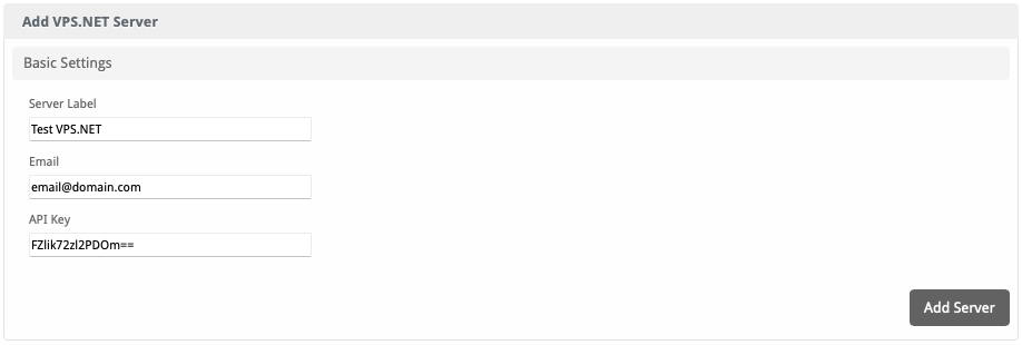 You may then add or update a server by setting the API credentials so that Blesta may communicate with VPS.NET.