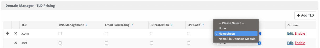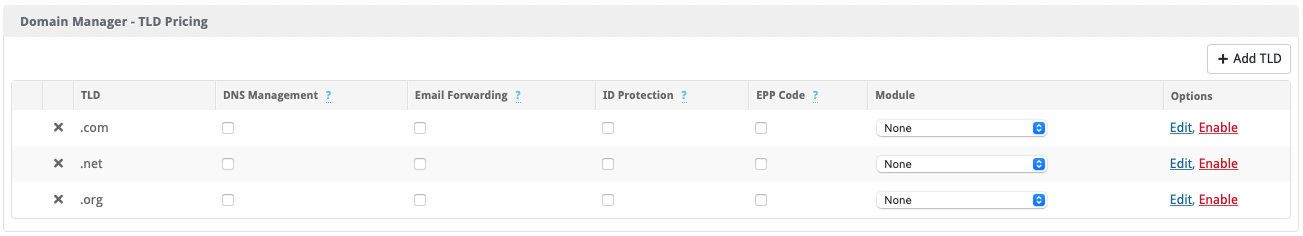 | Enable Tax for Domains | Unchecked | Whether or not the TLD Packages should be taxed. |