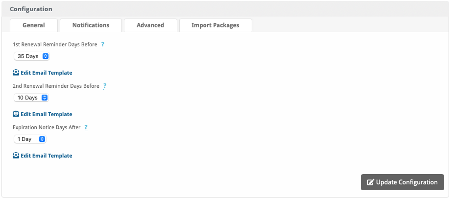 | 1st Renewal Reminder Days Before | 35 Days | The number of days before a domain expires to send the first renewal email (26-35 as per ICANN specs). |