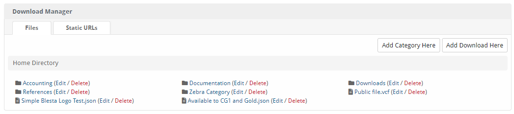 The Download Manager allows files to be downloaded from Blesta and can be tied to purchases.