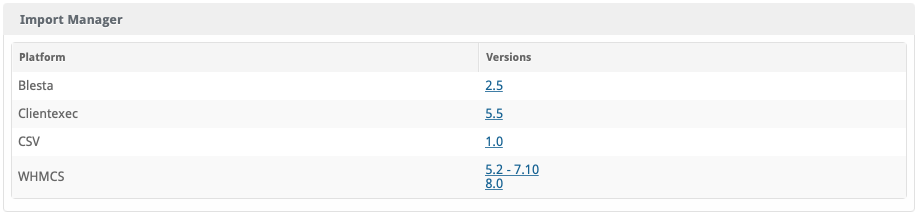 The Import Manager imports data from other systems as part of a migration to Blesta.