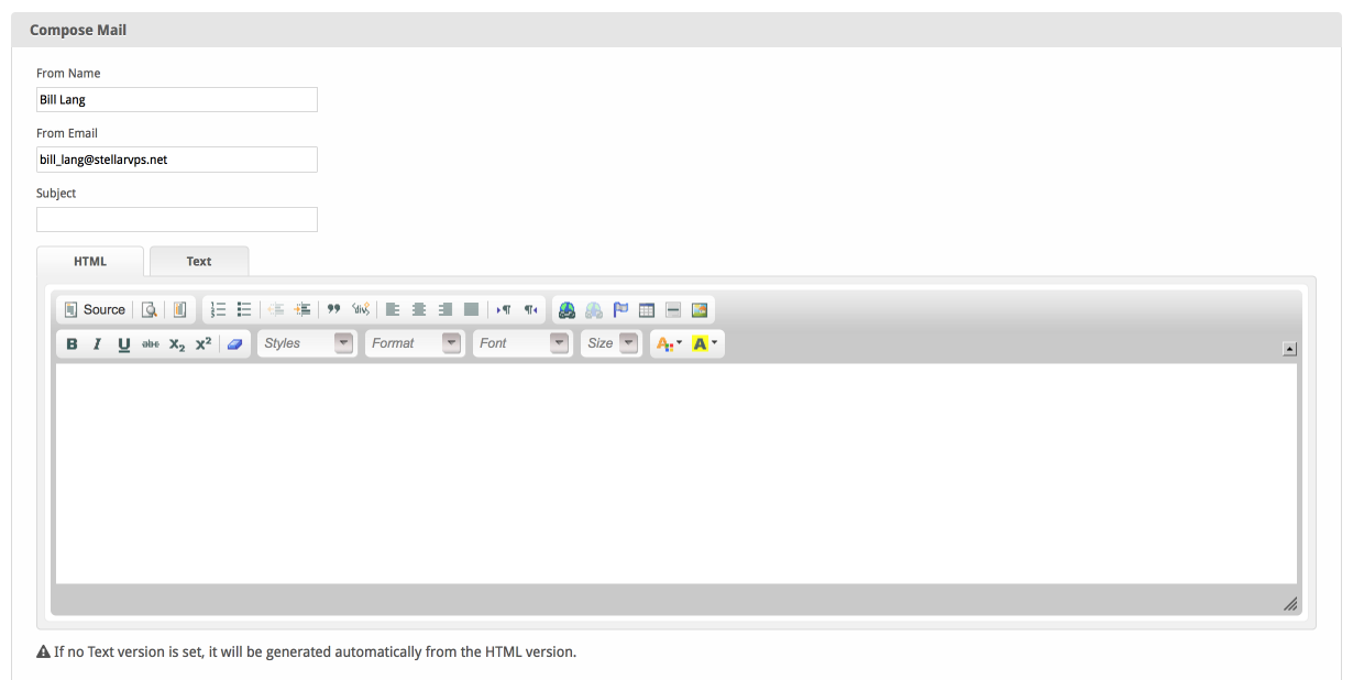 | HTML / Text | Enter your email content in the html / text boxes. If no Text version is set, it will be generated automatically from the HTML version. |